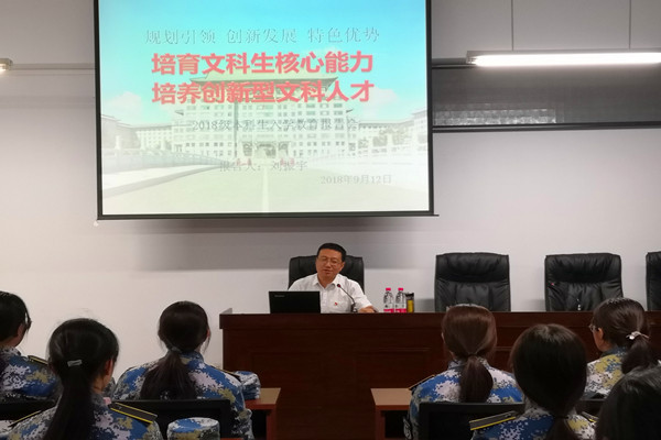 首先,刘振宇书记代表四海资讯导航官网对2018级全体新生的到来表示欢迎。随后,刘书记从课程、文化、实践、科创等几方面介绍了学校的育人平台,鼓励学生积极参与科研创新,明确生活规划与学习目标。同时,他对新生提出了几点要求:要提高社会实践能力,学习公文写作,好好利用导师资源,成为一名高素质文科人才。最后,刘书记祝愿新生拥有一个美好的大学生活。