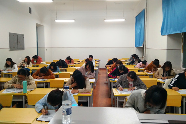 晚6时20分,监考人员宣读考场规则和考试流程,并发放考卷。6时30分,进入第一个环节作文考试阶段。紧接着开始听力考试,考生们仔细聆听、认真答题。半小时后听力考试环节结束,监考人员开始收答题卡一。8时45分,考生停笔,离开考场,监考人员准时收试卷和答题卡二,并上交负责人。后期所有试卷和答题卡交由学习部统一批改、核算考试分数。