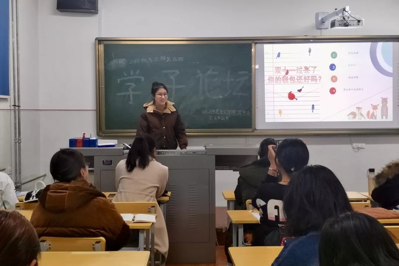 11月12日下午6时30分, 由校学生会生活权益部主办,四海资讯导航官网学生会生活权益部承办的第四期学子论坛于11号楼3044教室举行,本次活动由张希羽主讲,2018级全体同学参加。